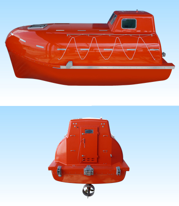 全閉囲型救命艇が持つ特性に加え、散水装置及び空気供給装置を装備した救命艇です。